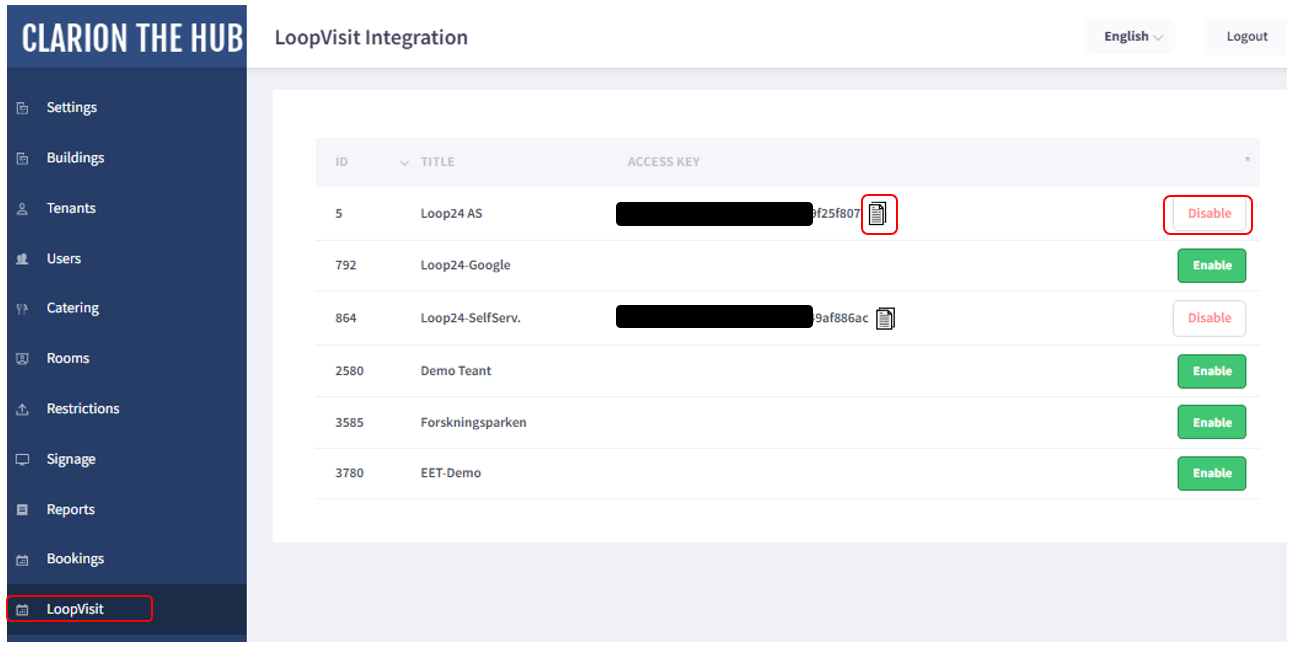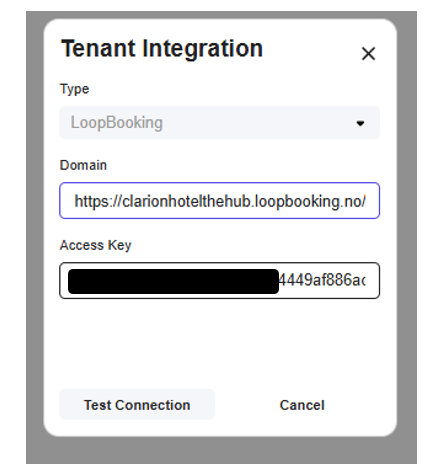 - Add the access key you copied from LoopBooking for the specific tenant.