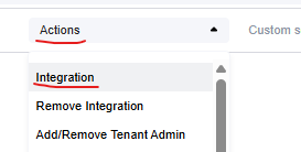 - Select “Actions” and “Integrations” on the tenant you want to integrate with LoopBooking